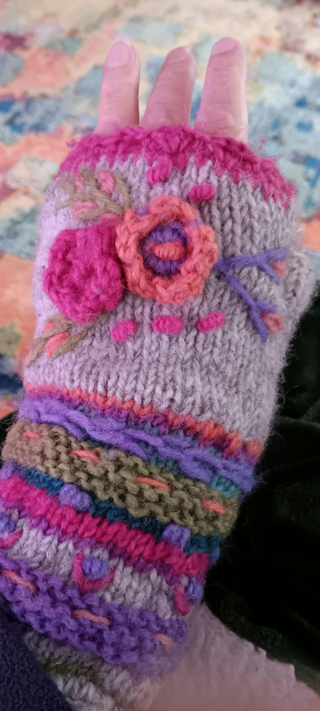 Our bestselling Lassen Handwarmers are richly detailed with hand-crocheted flowers, feather stitch embroidery, and scalloped edging for a cozy artisan look. A soft fleece lining adds warmth without bulk, making them perfect for crisp days and busy hands. Complete the look with the matching Lassen hat, headband, and boot cuffs.
