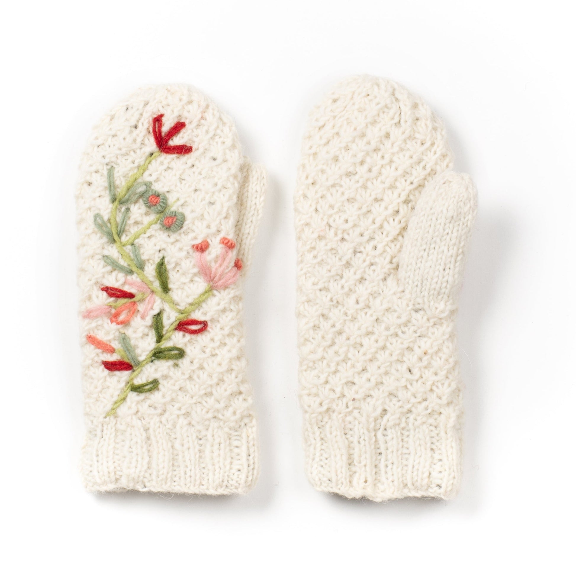 Fully fleece-lined and rounded at the ends, the Naomi Mittens are both practical and stylish. A generous ribbed cuff ensures a snug fit, while delicate creeping vine embroidery along the back of the hand adds a unique, feminine touch. Explore the Naomi design across our collection of knitted women’s accessories for a coordinated winter look.